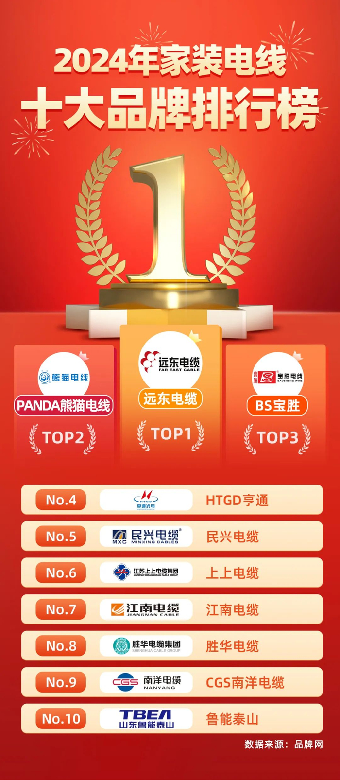 排名前十的电线品牌有:正泰、熊猫电线、鸽牌、金龙羽、德力西、飞雕、鸿雁、金环宇、远东电缆、恒飞等。