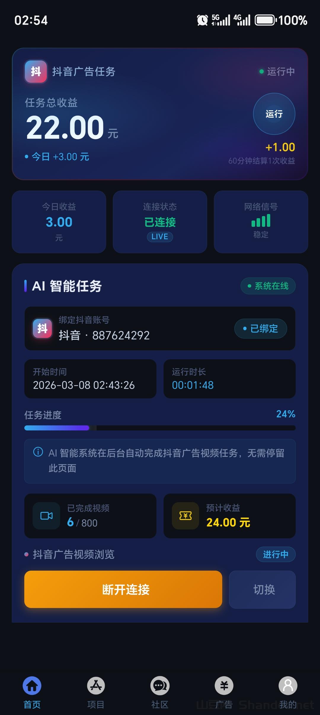 正文 抖客精灵对接团队,2026真实自动赚钱软件推荐 秒到网 V管理员 /今天/2阅读/0评论 0308 抖客精灵首码,2026全新褂机项目,斗音号一键绑定,进入平台主页即可褂机,自动斗音看广告视频、唰赞、唰关,对斗音号毫无影响!一天兜底24元,可多台手机操作更高收益!抖客玩法攻略:√抖客团长:直推2个成员托管服务,即是抖客团长,直推一位奖励25元+团队2元。√抖客股东:直推20个成员托管服务,即是抖客股东,直推奖励30元,团队3元。√抖客股东每天享受,平台每天总收入的80%分荭,分荭每天12点前自动更新,需要手动领取。